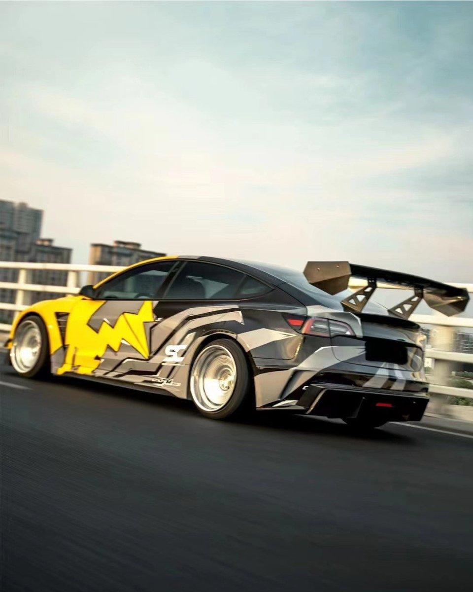 Upgrade Your Tesla Model 3 Performance Long Range Standard Base 2017 2018 2019 2020 2021 2022 2023 with Aftermarket Parts - "Hacker" V2 GT Rear Spoiler Wing Carbon Fiber / FRP from Robot Craftsman