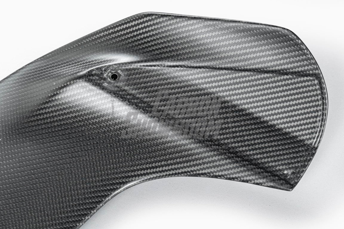 -Pre-Preg, also known as Dry Carbon, is a much more durable and lighter form of Carbon Fiber. Baked into its mold, Pre-Preg Carbon has the mold resin pre integrated into the piece.